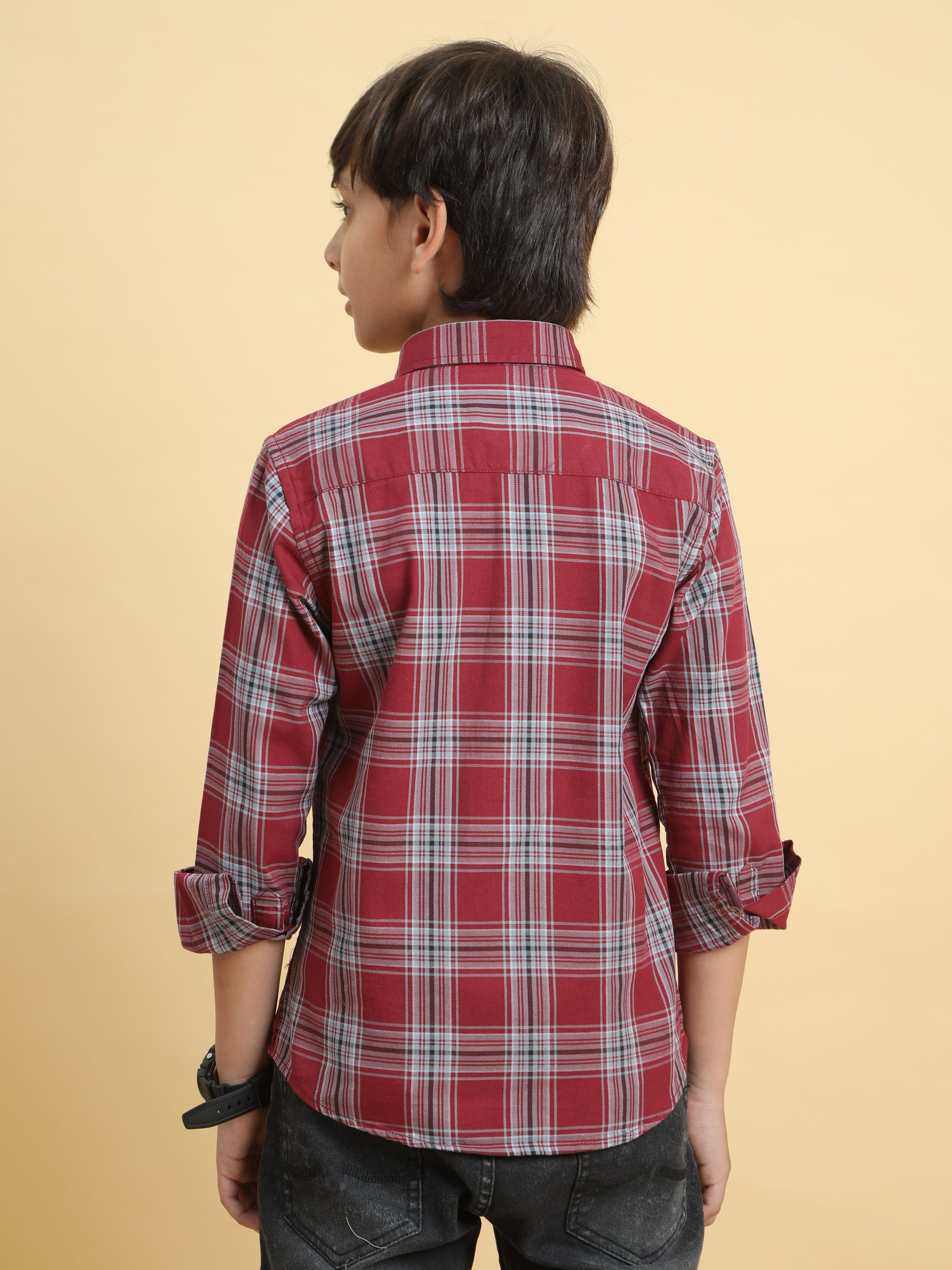 Maroon Twill Checks Shirt